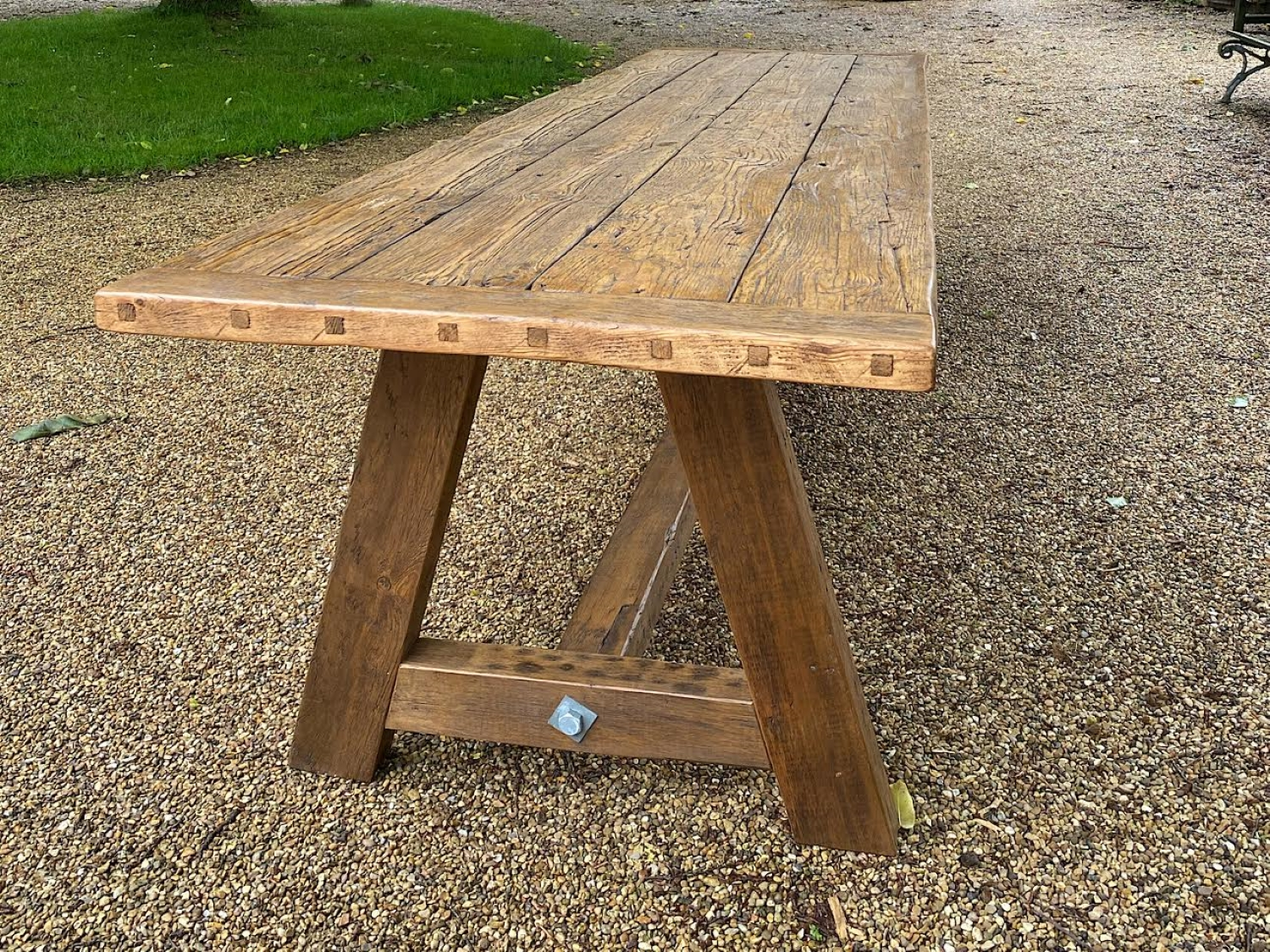 This traditional hand made dining table supported by our A-Frame base brings a wholesome rustic feel to any large dining space or kitchen.